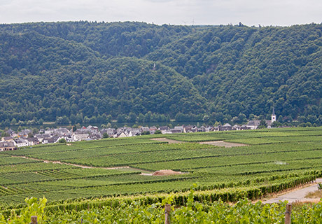 Minheim (500 Einwohner), in einer Urkunde des Trierer Domkapitals von 1061 erstmals urkundlich erwähnt, profitiert von seiner wunderschönen Lage. Von drei Himmelsrichtungen umgibt die Mosel mit ihren großen Wassern den Ort und begünstigt damit die für die Rebe so wichtige Wärmespeicherung im Tal. Der Ausbau der Mosel von 1960 bis 1964 zur Schifffahrtsstraße verbesserte noch die klimatischen und wirtschaftlichen Bedingungen für den Weinbau.